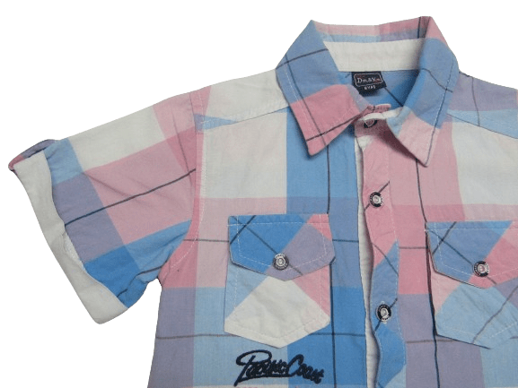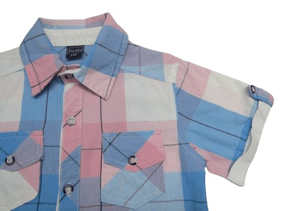 - Παιδικό κοντομάνικο πουκάμισο για αγόρια με γιακά, τσεπάκια, ανάγλυφα γράμματα και ρεβέρ με κουμπί στα μανίκια (χωρίς τύπωμα)